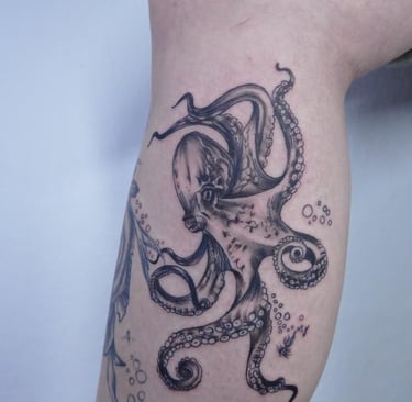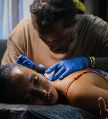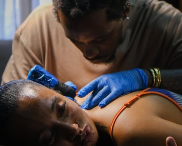 Adaptability is my strength. I work with all skin tones and a wide range of styles from black & grey, realism, and portraits to fine line and color tattoos. I value clear communication, good energy, and professionalism. I show up prepared for every appointment, take my craft seriously, and document each piece with care. If you’re looking for quality, focus, and good vibes, you’re in the right place. Karibuuuu.